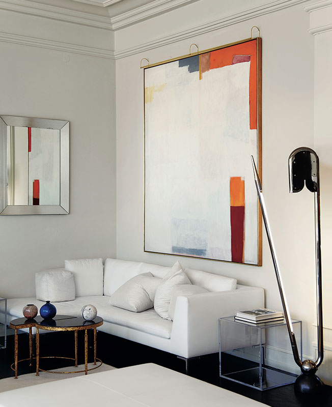 Классическая архитектура основана на симметрии — декоратор выдержал ее и в расстановке мебели. Самая грандиозная композиция создана в холле. Симметричное расположение предметов — верный способ сделать интерьер торжественным и парадным. Даже если эти предметы — светильники Инго Маурера, кресла Арне Якобсена, торшеры Акилле Кастильони или лежанки Ле Корбюзье. То есть иконы модернизма ХХ века.