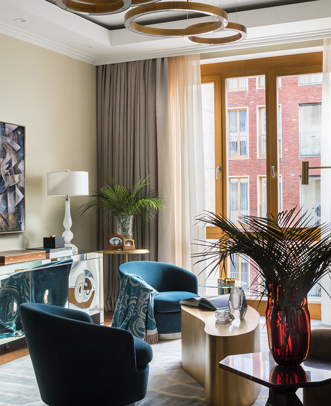 Заказчица активно занимается бизнесом, важной частью ее жизни является коллекционирование предметов искусства. Хозяйка квартиры хотела получить визуально и тактильно комфортный интерьер, продуманный с точки зрения эргономики, не создающий эмоциональное напряжение, успокаивающий.