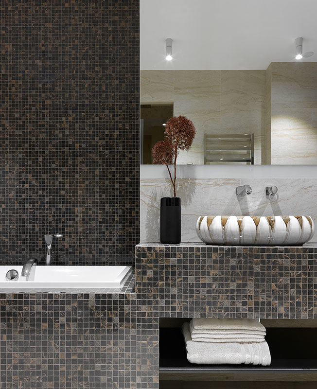 Главная ванная. Сантехника Villeroy & Boch, раковины-чаши привезены на заказ из Италии. Декор Barcelona Design, латунный подсвечник Any Home.