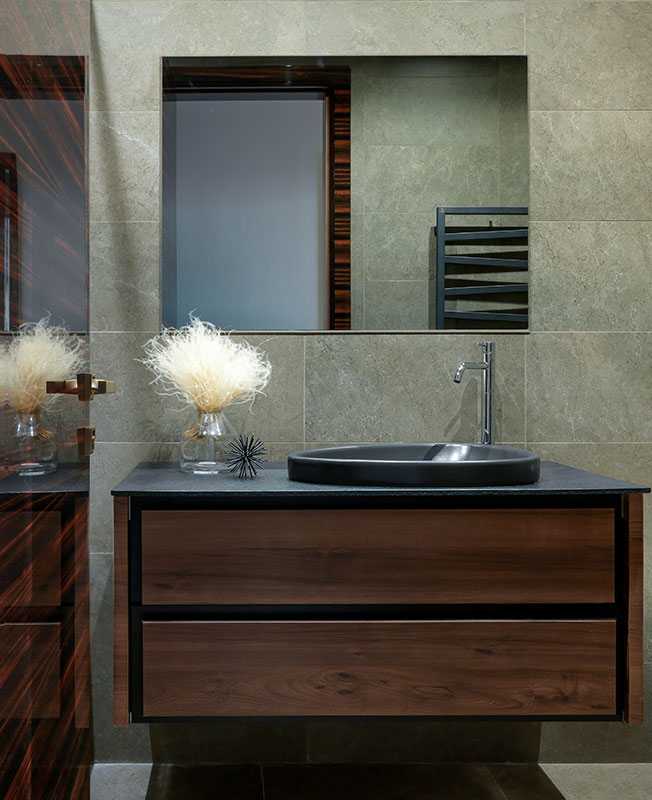 Главная ванная. Сантехника Villeroy & Boch, раковины-чаши привезены на заказ из Италии. Керамический столик Savour.design. Декор Barcelona Design.