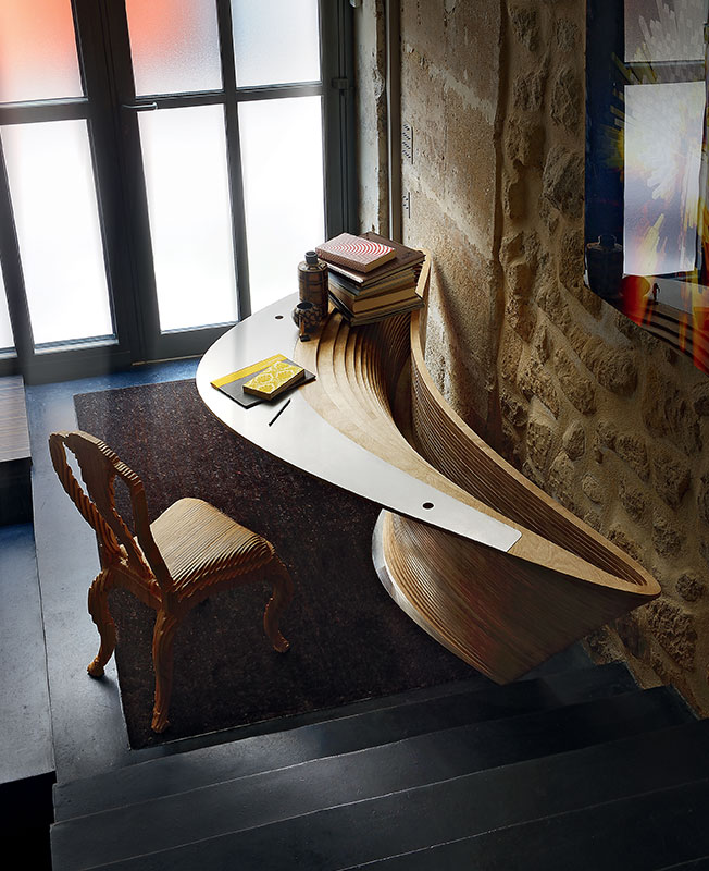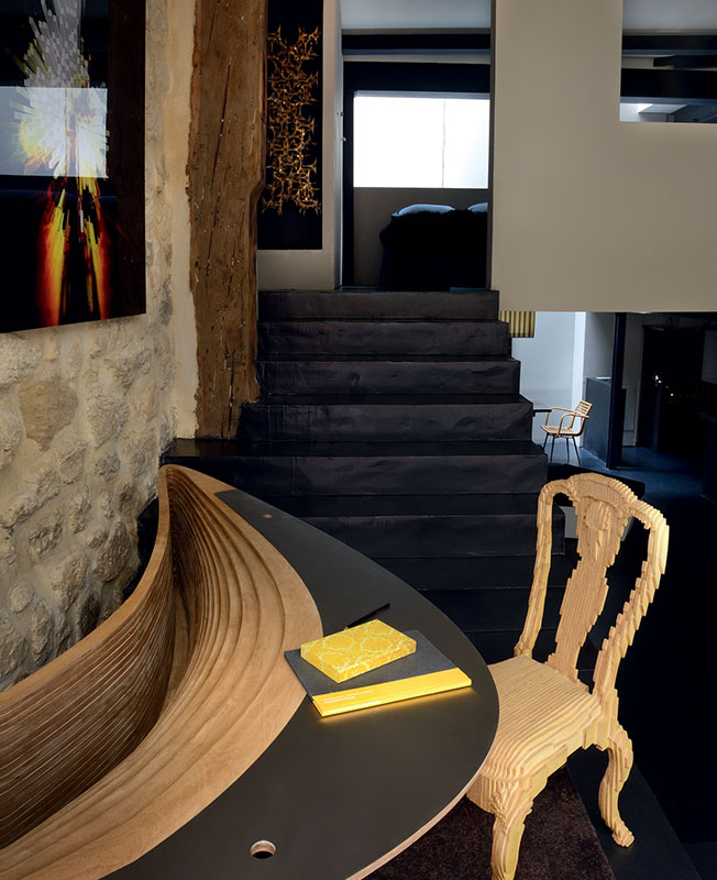 Армель Сойе создала уникальное пространство. Весь интерьер построен исключительно на авторских предметах из коллекции Galerie Armel Soyer.