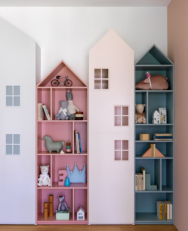 Главное достоинство этой квартиры — вид на лес. Поэтому мы сохранили обзор сразу от входа, так как входная зона не отделена никакими перегородками от гостиной и сразу задает тон всему помещению, сохраняя ощущение свободы, пространства и не перегораживая обзор. В детской угловое огромное панорамное окно открывает вид на лужайку с ландышами и дает невероятное количество солнца. Спальне, наоборот, отдано пространство с окном, куда попадает меньше всего света в квартире, чтобы ничего не мешало отдыхать и набираться сил.