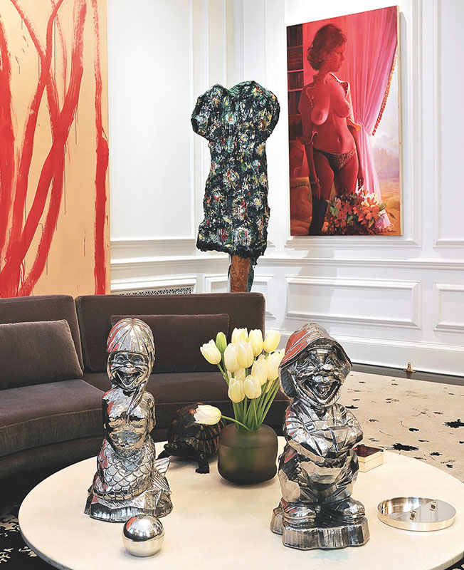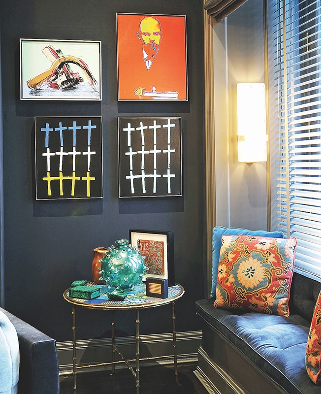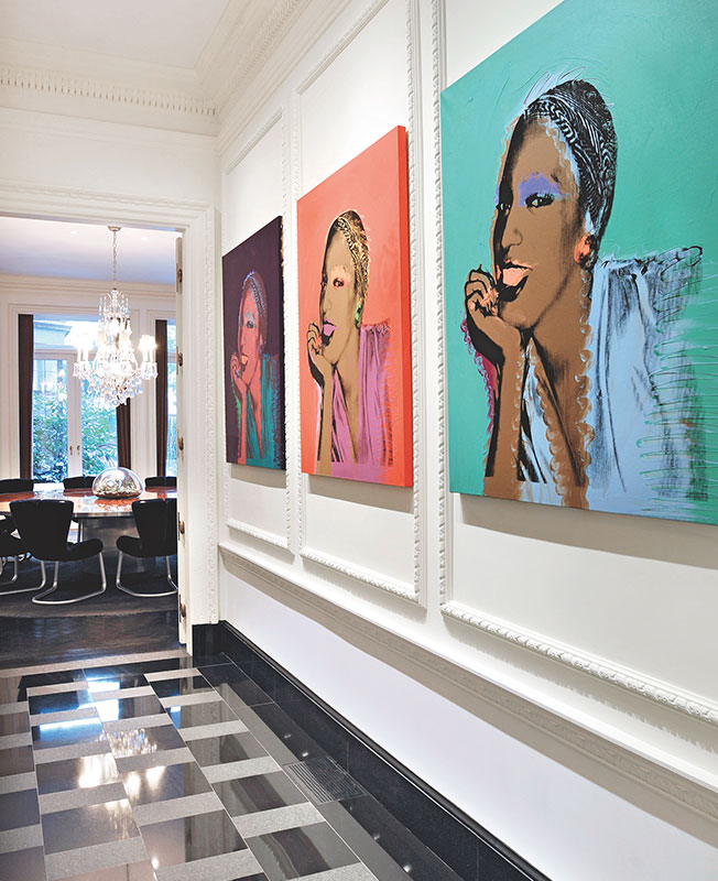 В интерьере — работы Пикассо, Фрэнсиса Бэкона, Виллема де Кунинга, Дэмиена Хёрста, Джеффа Кунса, Эда Руша, Жан-Мишеля Баскиа, Ричарда Принса. И конечно же обожаемый Уорхол, в том числе и малоизвестные работы. Портреты Уорхола, выполненные в технике шелкографии, по мнению хозяев, очень интерьерны. Они не оказывают такого психологического давления, как это часто бывает с крупными фото- и живописными изображениями людей. А лишь вызывают восторг и радость, создают праздник. С Уорхолом комфортно.