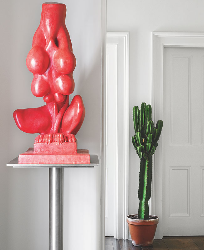 Фредди и Мюриель не понадобился специалист по интерьеру. Белые стены, белые потолки, минимальное количество фактур — в доме нет декора, за исключением разве что скромной старой лепнины. Все важные функции берут на себя произведения искусства. Они дарят цвет, организуют пространство, расставляют акценты.
