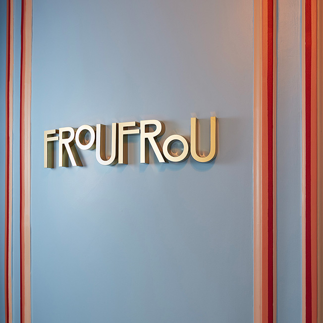 Froufrou — бывшее Cafe Guitry — театральный ресторан и бар, созданный в эстетике Belle Epoque. Мало кто из парижан знает это место и его аркады, выстроенные в стороне от Больших бульваров. Театр Эдуарда VII был создан в 1913. Историческое место с рестораном, баром-канканом и террасой возродила Moma Group (рестораны Manko, Laperouse, Noto).