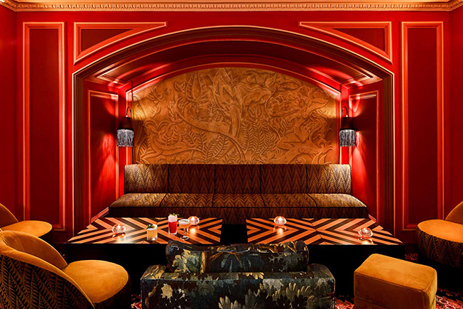 Алексис Мабий хотел создать артистическую атмосферу, которая понравится и парижской богеме, и заезжим гурманам. Насыщенная палитра, выверенные пропорции ар-деко, обилие зеркал и орнаментальный шик помогли фэшн-дизайнеру справиться с амбициозной задачей.