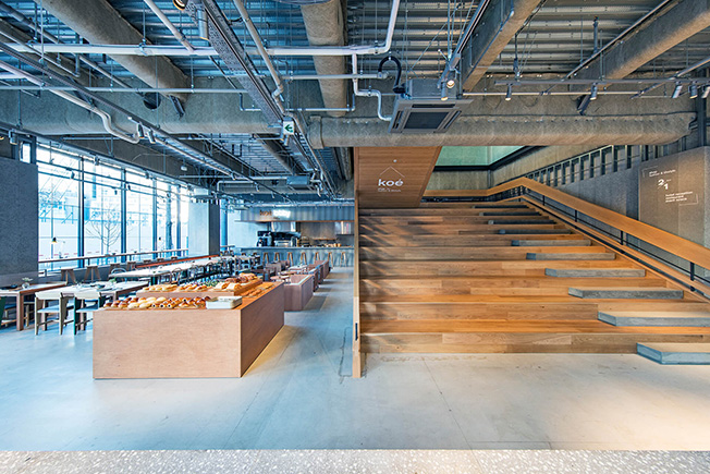 Чистое, ровное и наполненное светом пространство спроектировано дизайнерским бюро Suppose Design. Оно имеет три уровня, посвященных еде, музыке, искусству, шопингу и, наконец, отдыху.
