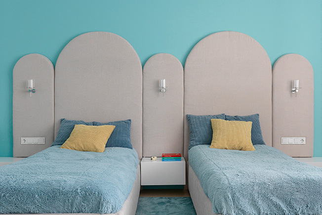Одна из детских. Кровати изготовлены на заказ. На стенах краска Benjamin Moоre.