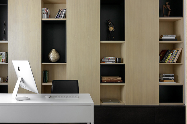 Кабинет. Стул BoConcept. Корпусная мебель изготовлена на заказ.