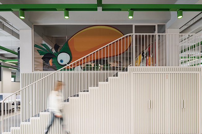 После обновления бизнес-стратегии компании понадобилось новое рабочее пространство, которое соответствовало бы статусу международного игрока. Головной офис решили переместить в здание бывшей типографии, построенное в 1978 году из силикатного кирпича. Рациональная модернистская структура и L-образный план отлично подошли для современного офиса с открытой планировкой.