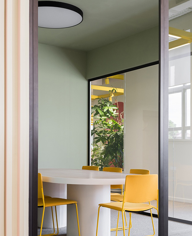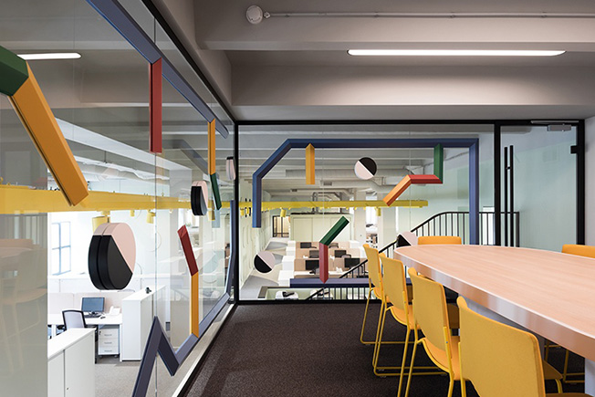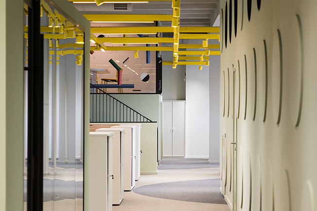 Трансформация рабочего пространства в игровое поле и искажение привычного масштаба — два основных мотива. «В детстве окружающие предметы кажутся больше, чем есть на самом деле, и воспринимаются не как функциональные объекты, но как пространство для игры. Это ощущение стало основой дизайн-решения», — рассказывают авторы.