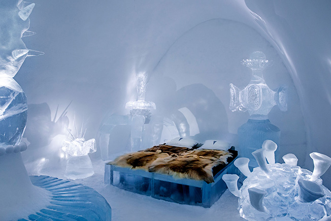 Большинство гостей останавливаются на три ночи (только одна в ледяной комнате, а остальные — в теплых). Список развлечений для гостей включает северное сияние, катание на снегоходах и собачьих упряжках, занятия скульптурой изо льда и, конечно, праздничный ужин из пяти блюд на тарелках из льда речки Торн.