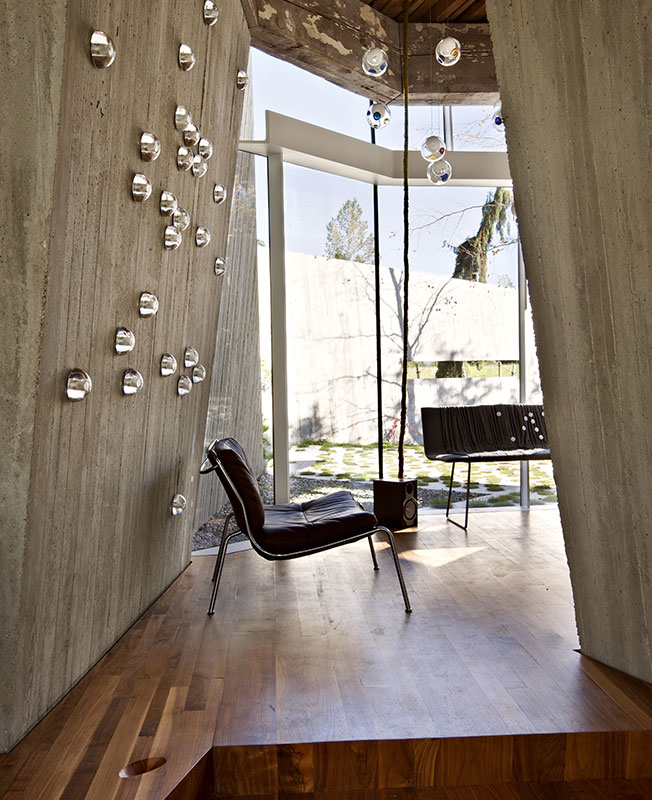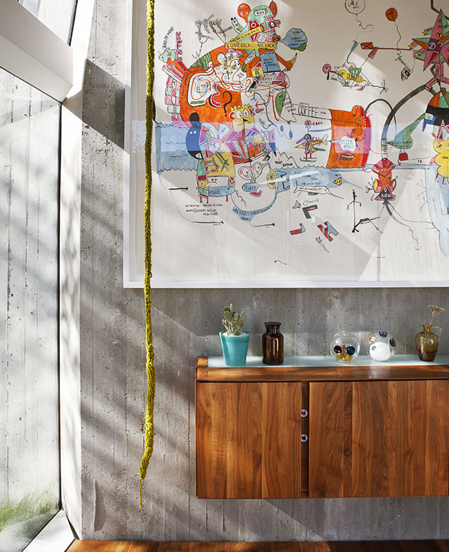 В доме преобладают «контекстуальные» предметы — столы и стеллажи, которые созданы Арбелем по меркам дома; их даже сложно назвать мебелью. Однако есть и вещи «из каталога». Среди них — диван голландки Хеллы Йонгериус. Хелла — влиятельная персона дизайн-сцены, сделавшая ремесленничество модным. «Как-то я выступил куратором выставки ванкуверских дизайнеров 1960-х и 70-х, — вспоминает Арбель. — Неизвестные в мире имена, однако они важны для нашего региона. Чтобы вписать их в глобальный процесс, я добавил несколько современных вещей, близких по духу. Этот диван идеально подошел».