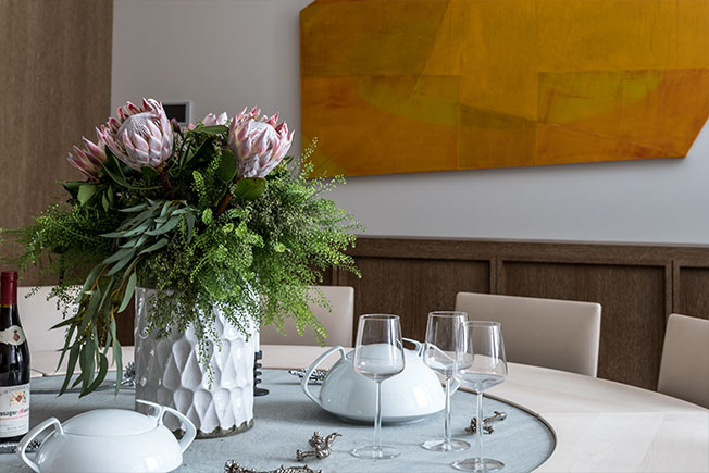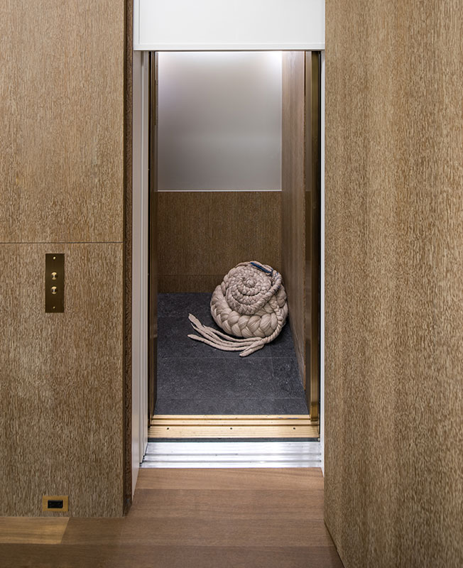 Ключевой элемент — инсталляция художницы Сары Оппенхаймер. «Сара — мой друг, я с ней давно хотел поработать, и вот настал момент, — рассказывает Майкл Чен. — Она создала тщательно продуманное произведение искусства, которое мы даже представить себе не могли. Нам было очень важно встроить инсталляцию в «тело» дома, чтобы она осталась там навсегда, как его неотъемлемая часть. У нас получился очень красивый союз искусства и архитектуры, делающий пространство уникальным».