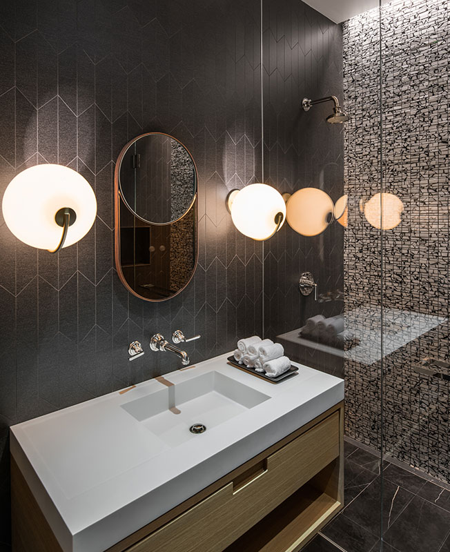 Раковина изготовлена на заказ из кориана. Бра Bec Brittain.