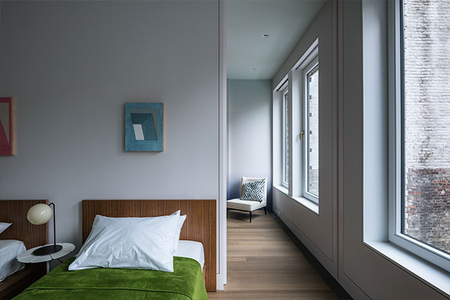 Одна из спален. Кровати Bludot. Винтажное кресло Пола Маккобба.