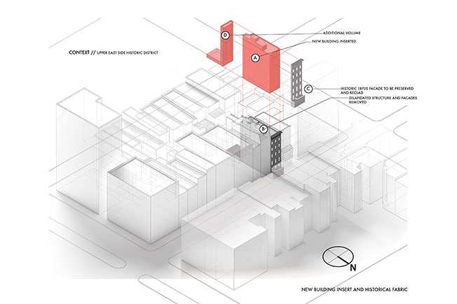 Изогнутые вырезы, v-образные скульптурные детали, характерные для оригинального стиля здания, пересмотрены Ченом с помощью современных процессов производства, таких как компьютерное фрезерование. Исключительно тонкую геометрию, воспроизводящую исторические фрагменты, удалось получить благодаря цифровому проектированию.