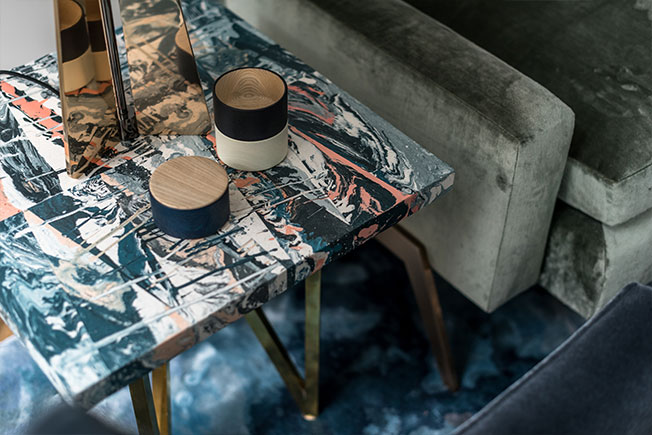 Cтолик из джемсонита Хильда Хеллстром выполнила специально для гостиной.
