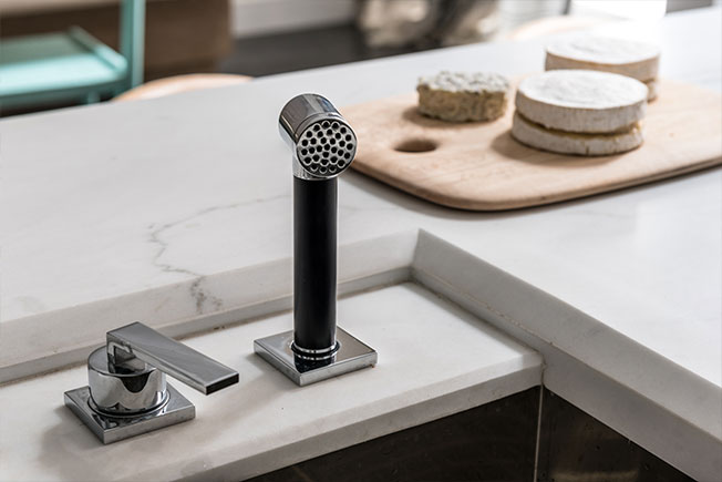 Кухня оборудована смесителем Dornbracht.