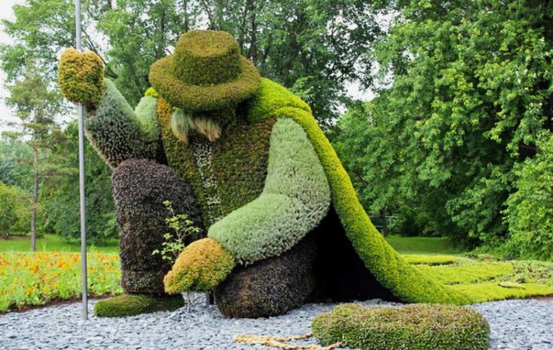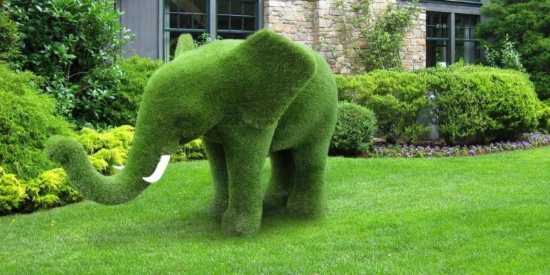Кусты имеющие аккуратно выполненную стрижку, в виде животных или персонажей, могут стать как самостоятельными архитектурными объектами, так и прекрасными поделками для Вашего сада.