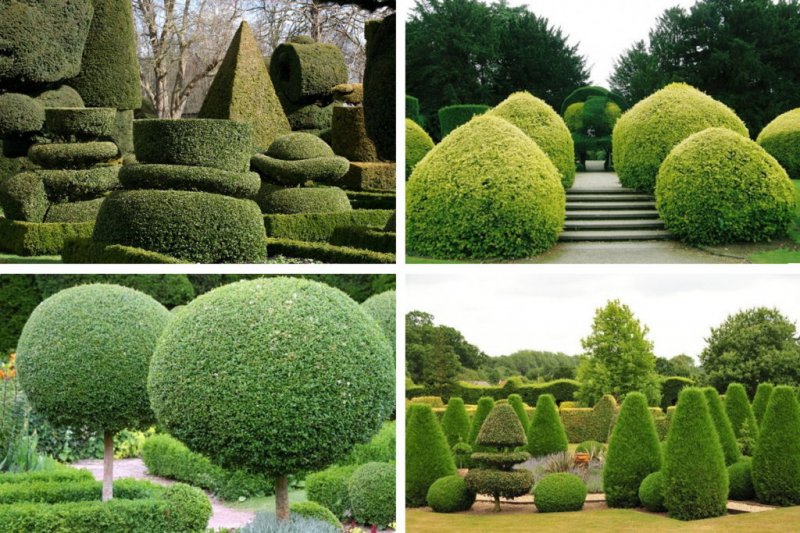 Для фигурной стрижки подходят растения имеющие плотную и пышную крону, такие как туя колоновидная, самшит вечнозеленый или барбарис Тунберга.