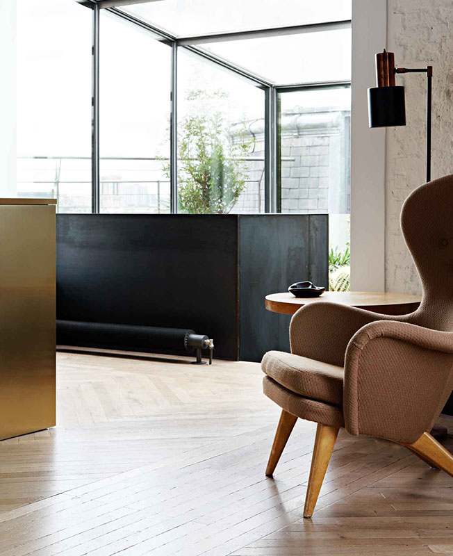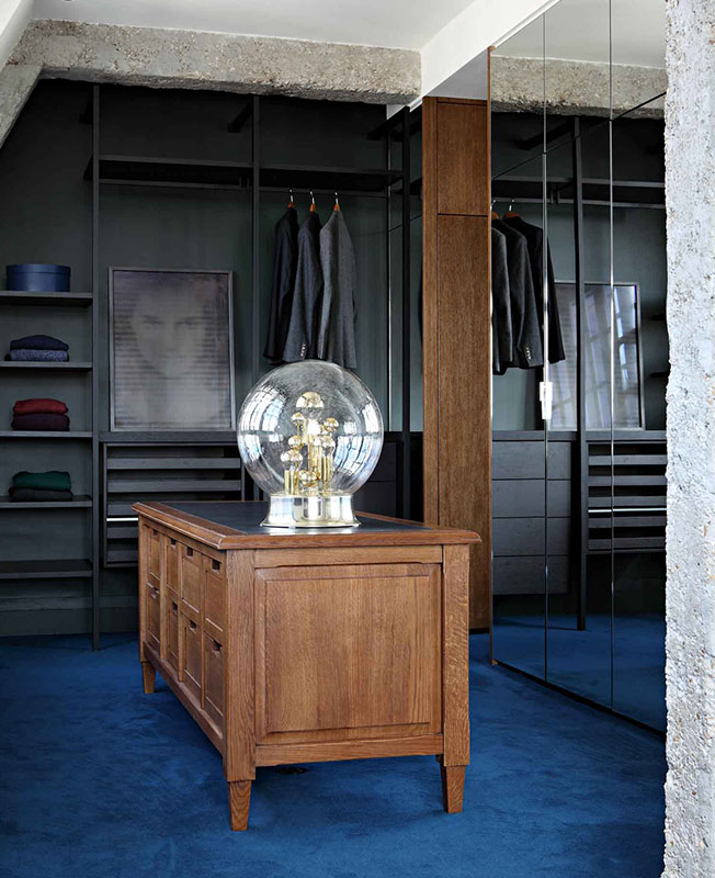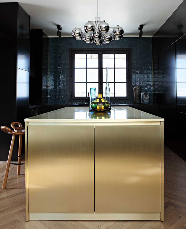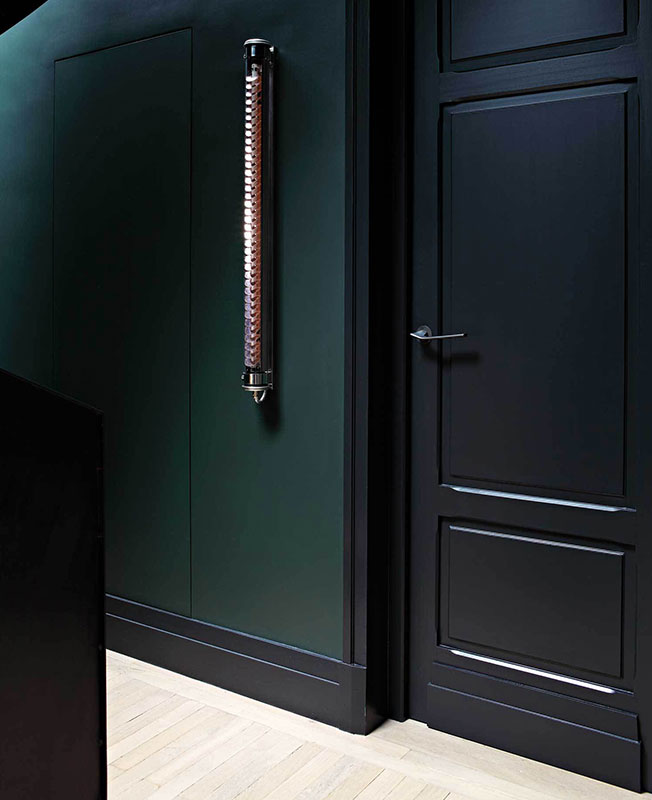 Интерьер в Париже предназначался для активного путешествующего парижского бизнесмена. Карл и Оливье — мастера тонких, рафинированных пространств, где выбору материала отведена первостепенная роль, — покрыли бетонную оболочку квартиры темными красками. Сочная палитра подарила интерьеру мужественность и многослойную роскошь.