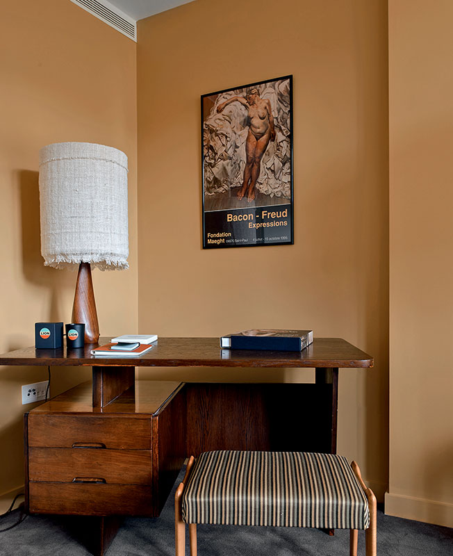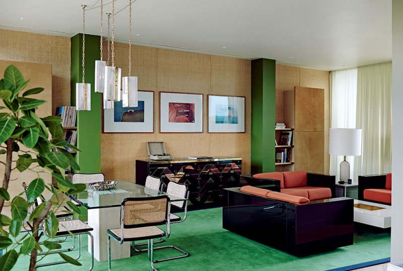 Квартира обставлена винтажными предметами, разработанными Беллой Фрейд коврами, украшена керамикой Элизы Хоупвелл и оп-артом Якоба Вольффа. Всё вместе образует свежий ретрообраз. Как оказалось, семидесятым подходит мебель из хромированных трубок родом из 1920-х — хрестоматийные стулья Марселя Броейра, выпускаемые Knoll, расставлены вокруг стола.