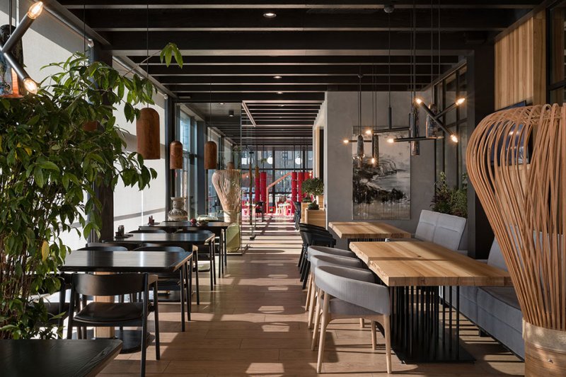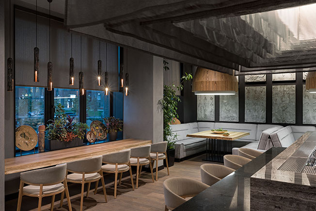 «Большинство японских ресторанов — камерные и, безусловно, уютные. Мы уделили значительное внимание планированию: по желанию заказчика необходимо было вместить до 250 посетителей одновременно», — отмечает Илья Товстоног, главный архитектор Sergey Makhno Architects.