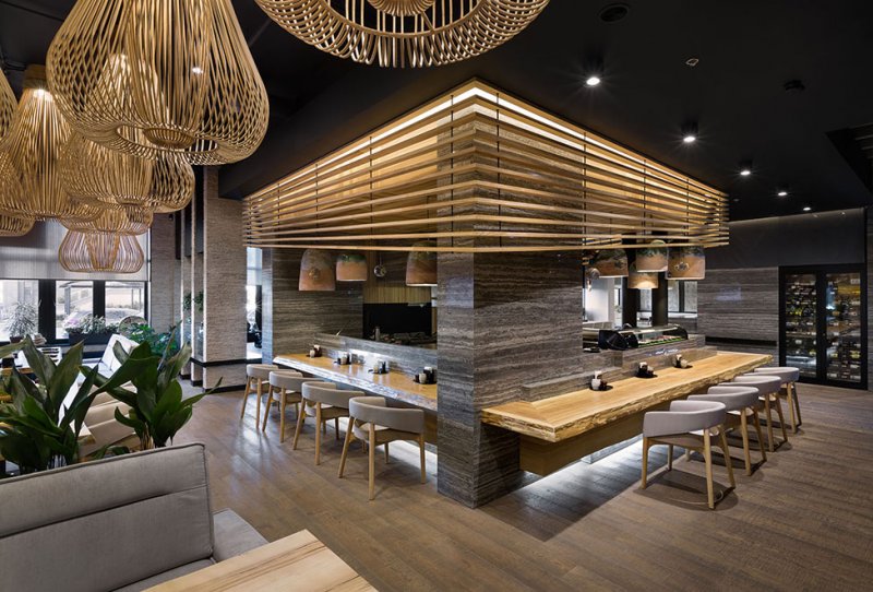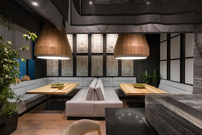 Архитекторы Сергей Махно и Илья Товстоног (Sergey Makhno Architects) спроектировали интерьер самого большого японского ресторана на Украине — заведение шеф-повара Фудзивара Йошихиро площадью 800 кв. метров.