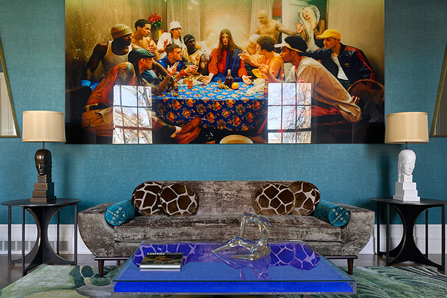 Малая гостиная получила название арт-рум после того, как в ней разместили крупную фотографию «Тайная вечеря» Дэвида Лашапеля.