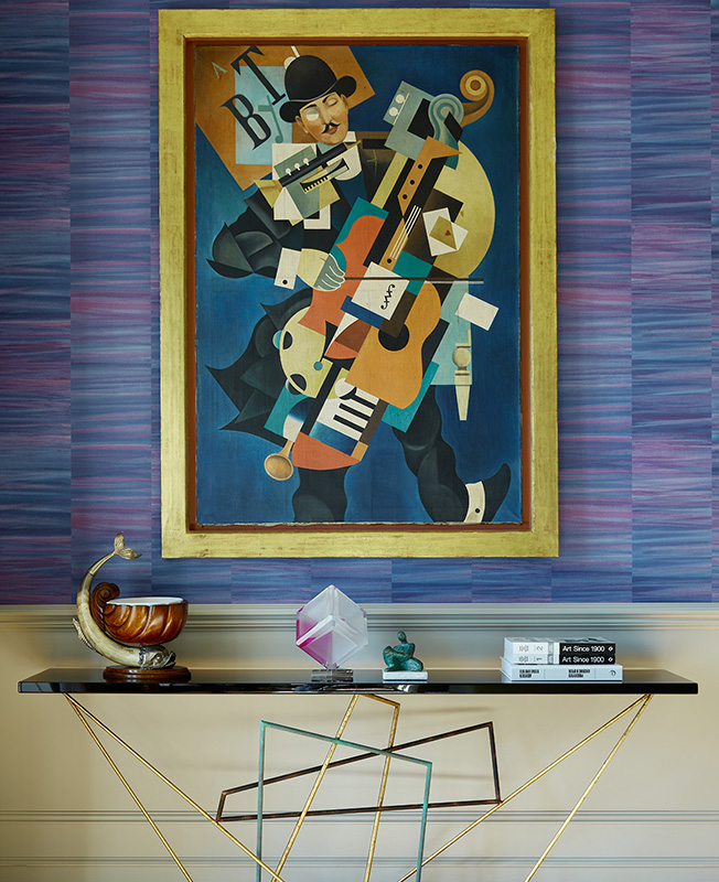 Фрагмент гостиной. На консоли Porta Romana винтажный декор. На стене — работа Ивана Пуни.