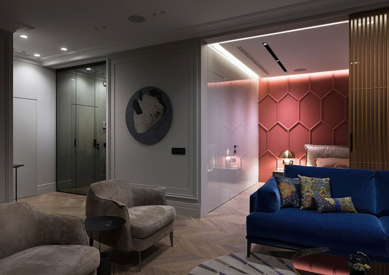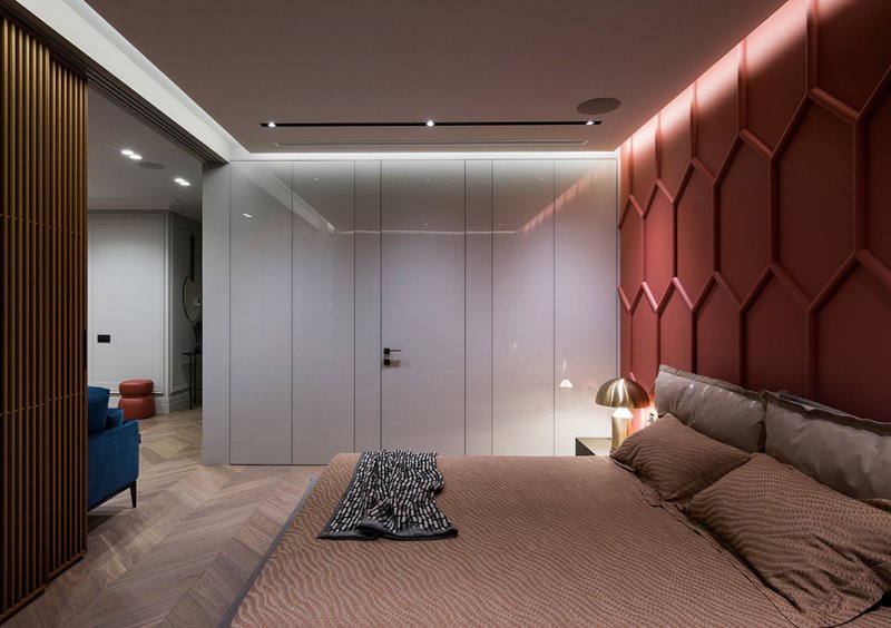 Архитекторы Андрей Медведь и Игорь Фоменко, бюро OM-Architecture, оформили интерьер квартиры в Киеве. Яркой, характерной деталью всего проекта стала стена в зоне спальни.