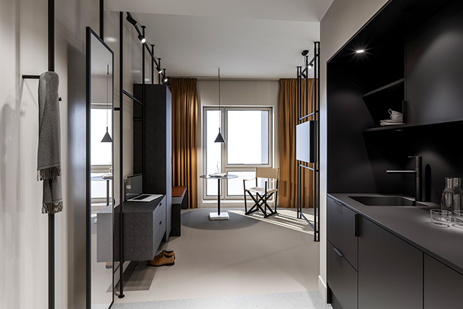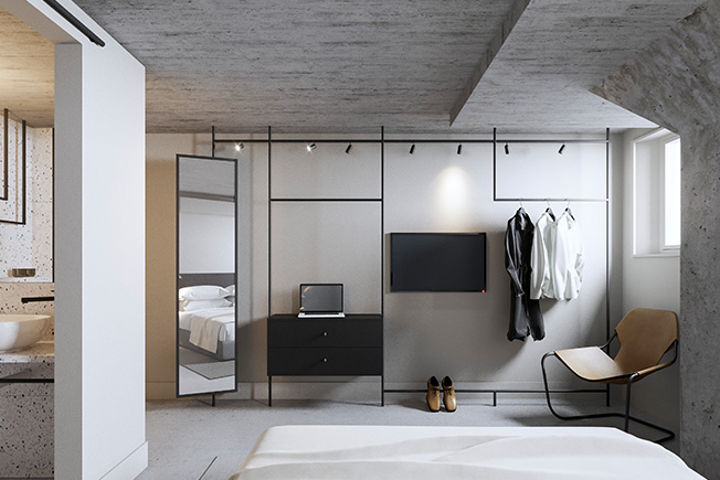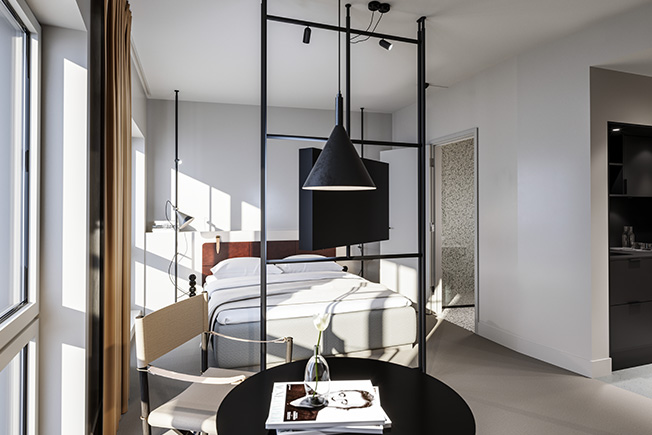 249 номеров, включая 58 студий, спроектированы так, чтобы сочетать в себе красивую эстетику, отличную функциональность и неподвластный времени дизайн. Пространства характеризуются палитрой мягких серых оттенков и тщательным выбором дизайнерских предметов, соединенных с изготовленной на заказ ремесленной мебелью.