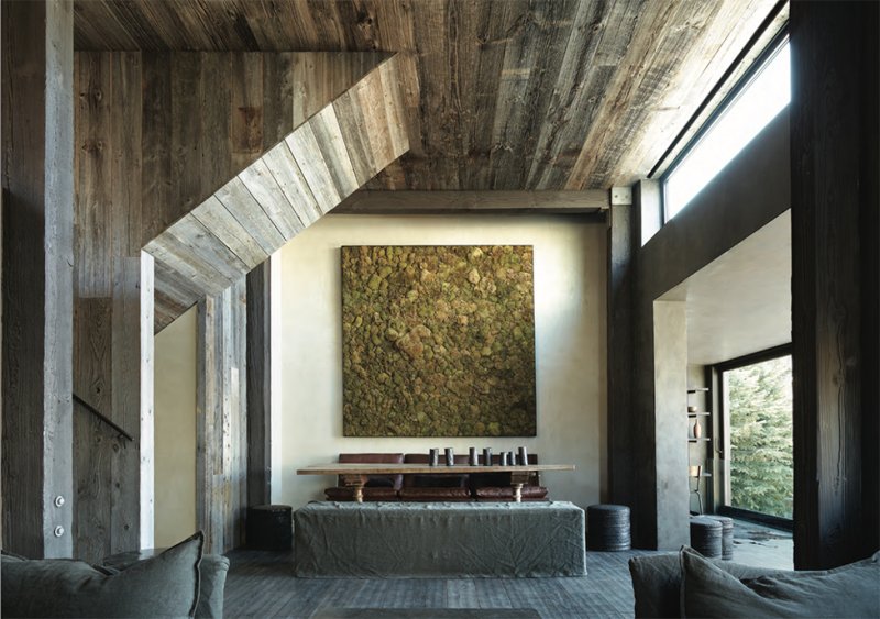 Чад Оппенгейм, Oppenheim Architecture + Design, базируется в Майами и сначала для отдыха семья хотела купить просто участок земли для строительства, однако это старое шале в самом престижном районе города – Ред-Маунтин, покорило Чада своим удачным расположнием и потенциалом. Чад продумал всё, чтобы дом как можно меньше вредил окружающей среде и приносил как можно больше пользы своим владельцам. Декор сведен к минимуму, немногочисленная мебель сделана из натуральных или вторично использованных материалов.