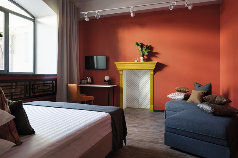«Самой большой удачей в проекте стал сам заказчик, готовый к экспериментам с цветом и формами. Гости отеля всегда получают заряд положительных эмоций в окружении деталей интерьера, которые могут показаться слишком смелыми для дома».