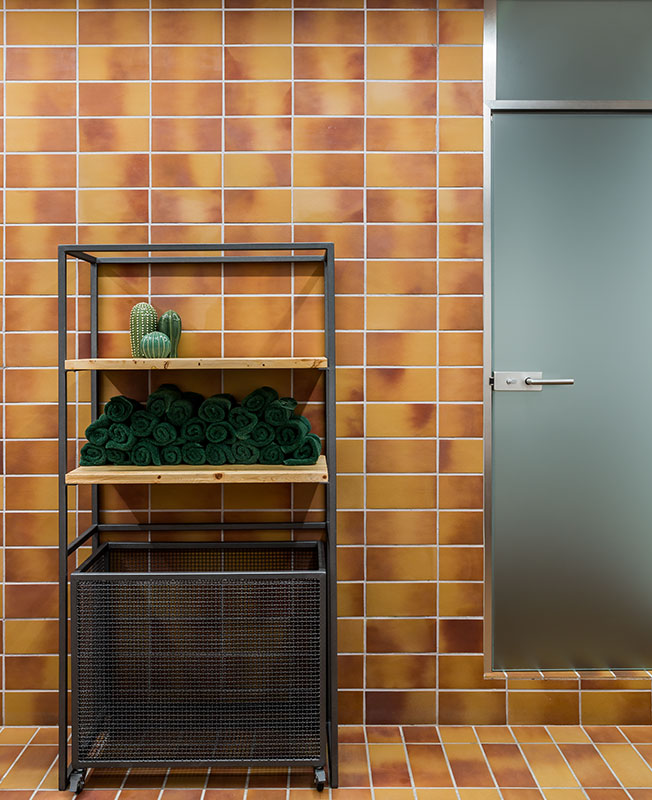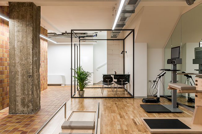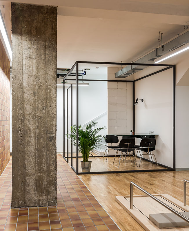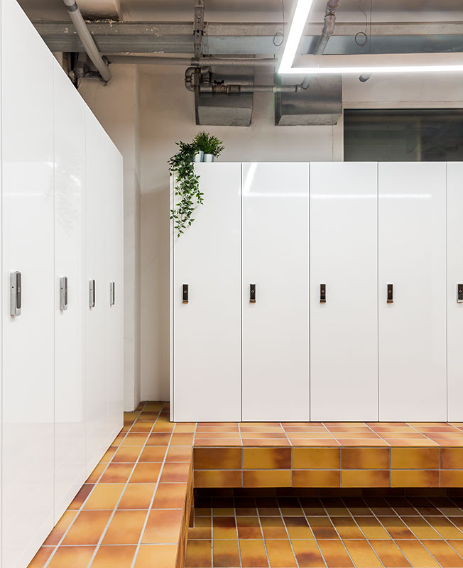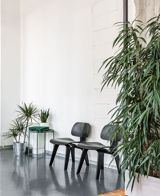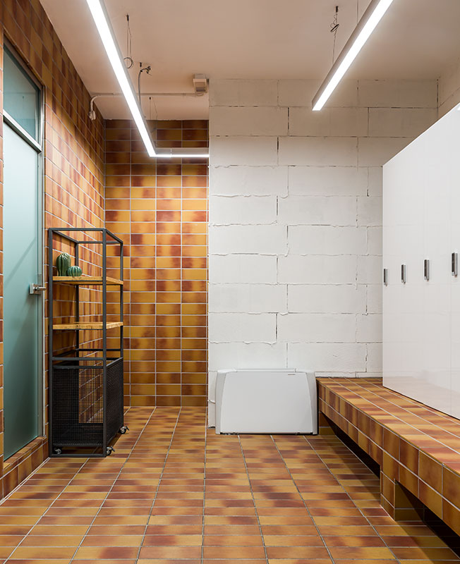 Предметов мебели в клубе немного, но все они тщательно подобраны. Например, все стулья в интерьере — Vitra. Стеллаж для полотенец, стойку ресепшен, лавочки с подогревом в раздевалках, конструкцию для переговорной комнаты проектировали сами.