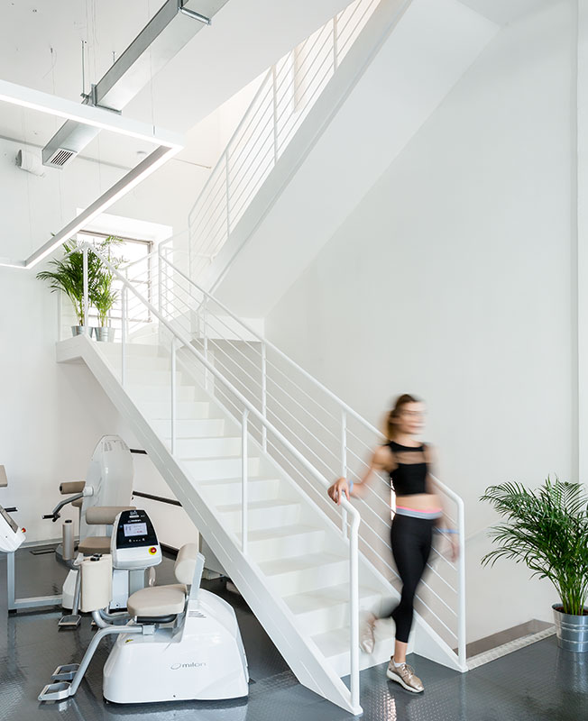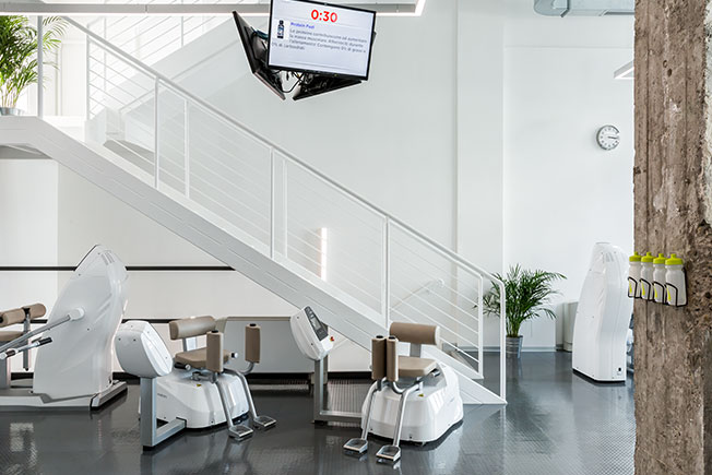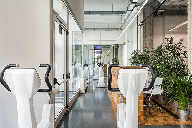 Основной задачей было соблюсти эргономику и правила расстановки тренажеров milon. В заведении все подчиняется концепции быстрого фитнеса: «Много спорта тоже вредно». Оптимальное время занятия — не более 35 минут и растяжка после.