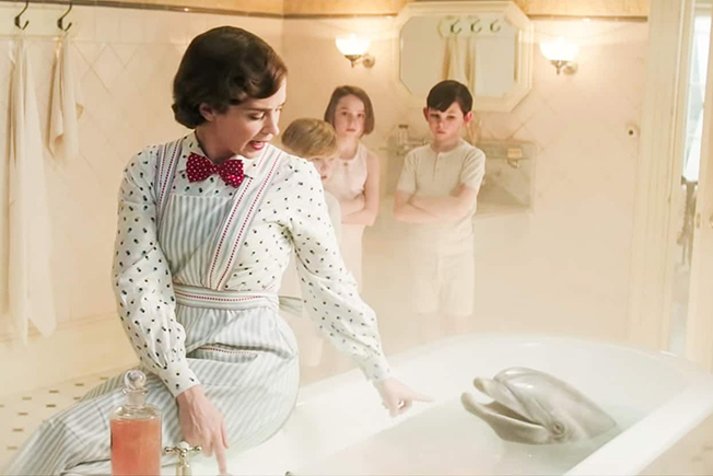 Музыкальное продолжение картины 1964 года рассказывает о новых приключениях неповторимой няни и следующего поколения семейства Бэнкс. Снятый с многочисленными отсылками к предыстории, фильм наполнен яркими спецэффектами и ностальгическими декорациями, противоставляя мир взрослых миру детей. Режиссер Роб Маршалл и художник-постановщик Джон Майр выстроили копию Вишневой улицы на самой большой звуковой сцене в киностудии Shepperton Studios, а также обновили знаменитую резиденцию Бэнксов.
