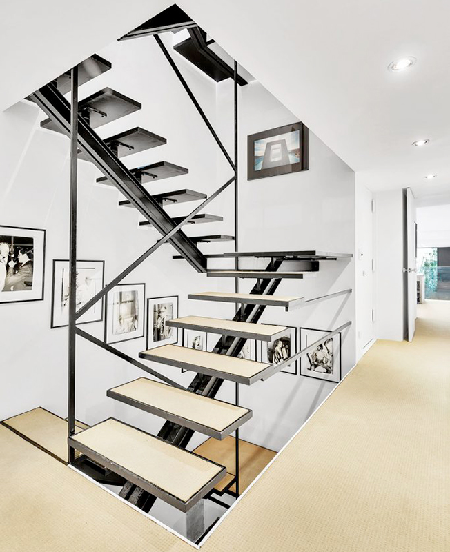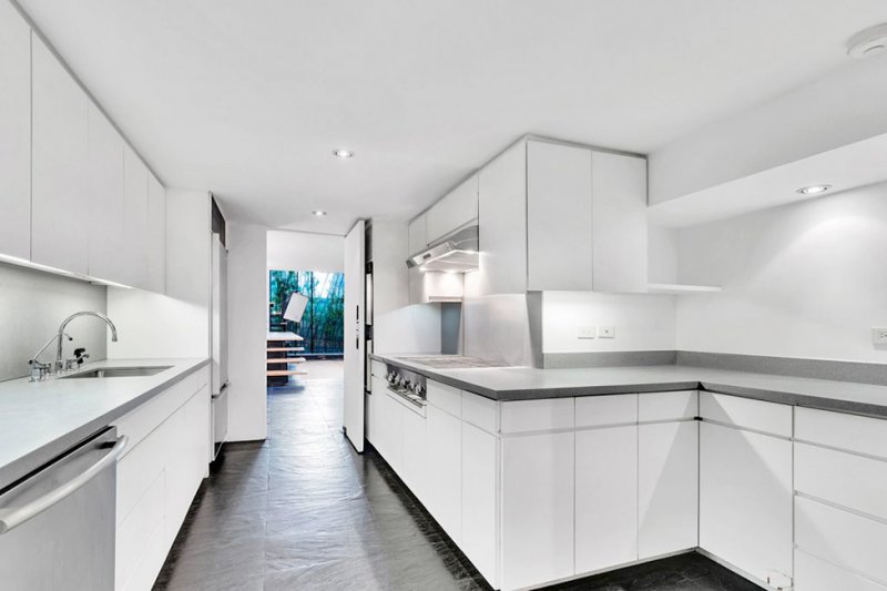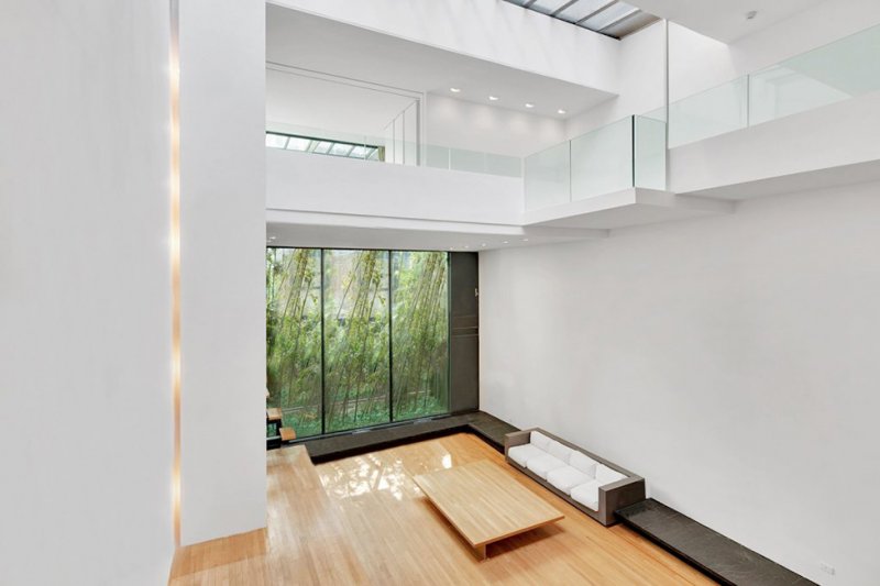 Мансардное окно и высота потолка, которая в главной гостиной достигает 9,7 метров, добавляют ощущение воздуха, не лишая при этом пространство домашнего уюта. На площади 696 кв. метров разметились еще две гостиные, четыре спальни, в том числе мастер-люкс двойной высоты с современной гардеробной, пять ванных комнат, кухня и бар. В доме есть лифт, а также гараж, терраса на крыше (148 кв. метров) и оранжерея на заднем дворе.