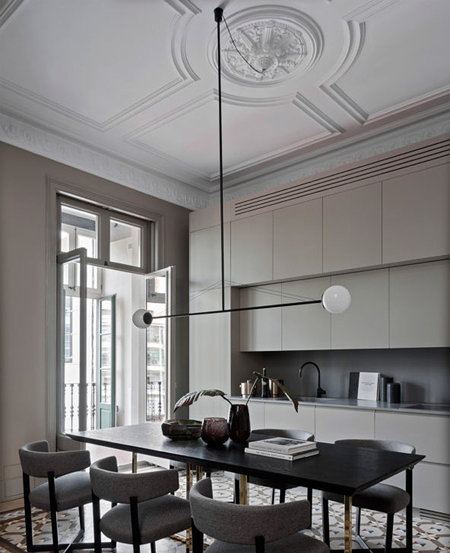 Квартира площадью 180 кв. метров принадлежит одному из крупнейших коллекционеров искусства из Стамбула, который поселился здесь вместе со своей женой и детьми влюбились в архитектуру, оценив культурное обаяние Эшампле.