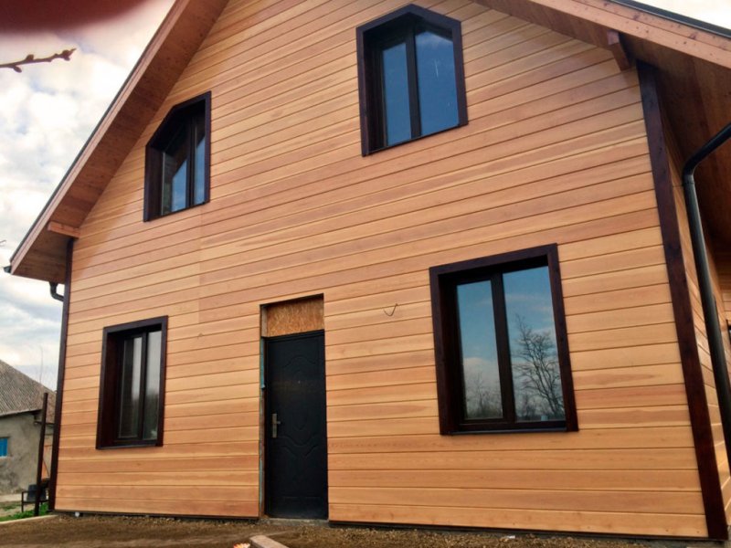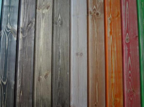 Крашенная облицовочная доска используется для отделки фасада. Зачастую, используют следующие породы древесины: лиственницу, брус, вагонка, блок-хаус. Стоит отметить достаточно широкий ценовой сегмент домов, в которых применяется данный вид отделки. В первую очередь отделочные изделия популярны в сооружениях элитного класса. Для таких случаев владелец предпочитает приобретать продукцию, выполненную из экзотичных дорогостоящих пород древесины.