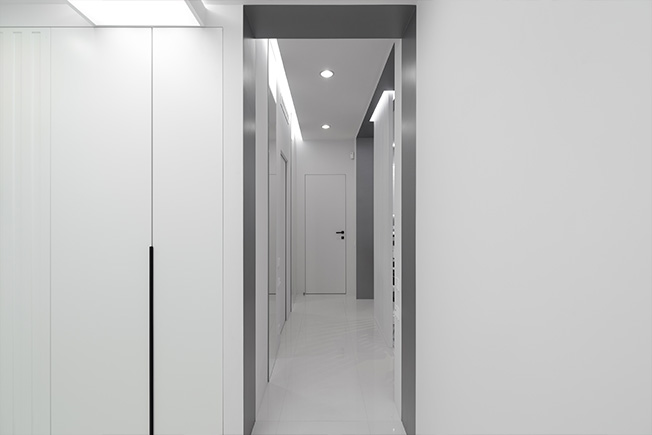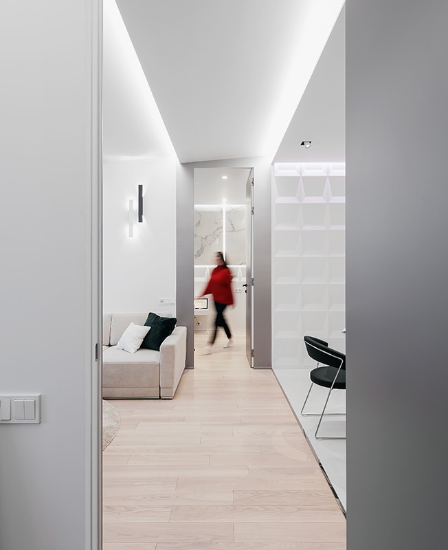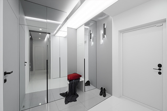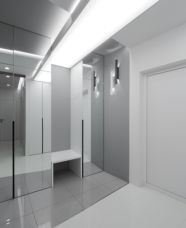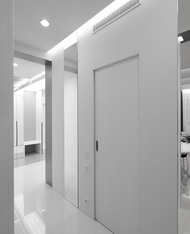 Двухкомнатная квартира расположена в жилом комплексе V-House в районе Нагорной, в монолитно-кирпичном доме. Ее можно было бы назвать вполне обычной, если бы не длинный темный коридор: он занимал 16 кв. метров, при том что вся площадь квартиры составляла 82 кв. метра.