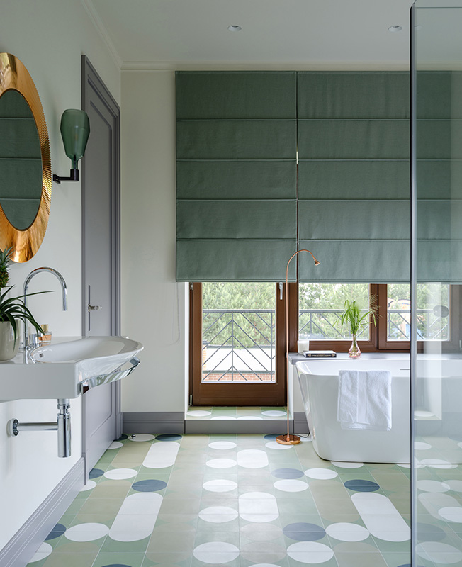 Пространство с яркими акцентами и необычной ванной — работа дизайнера и художника-графика Натальи Четвериковой. Текстиль для обивки дивана и для штор — Бельгия.