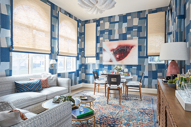 Стильный лаунж на первом этаже назван Blue Paradise. «Он расположен рядом с парадной гостиной, поэтому я представлял это пространство как более интимную, настроенческую комнату для отдыха», — говорит Питер Данхэм, Peter Dunham Design. Проект в рамках шоу декораторов Palm Beach Kips Bay Decorator Show House 2019.