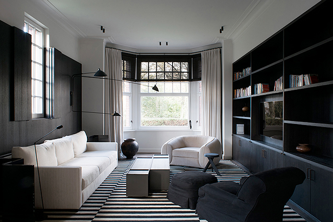 Родольф Парант. На письменном столе, диз. Дж. Моррисон, ваза, диз. Х. Йонгериус. В углу светильник П. Шарпена, любимого дизайнера автора проекта. На полу ковер Grappe, диз. Р. и Э. Буруллеки.