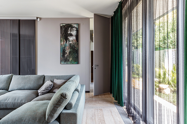 «Вилла на море» по проекту Яны Холикбердиевой. В гостиной на окнах шторы из шерстяного бархата Chivasso.