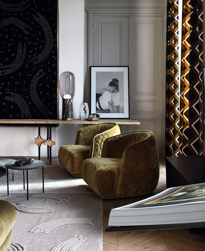 Филипп Телен и Тьерри Гонзаль (Philippe Thelin & Thierry Gonzal) реконструировали парижскую квартиру, принадлежавшую ранее Паломе Пикассо. Потолочный светильник Сержа Муйя — великолепный образец коллекционного дизайна.