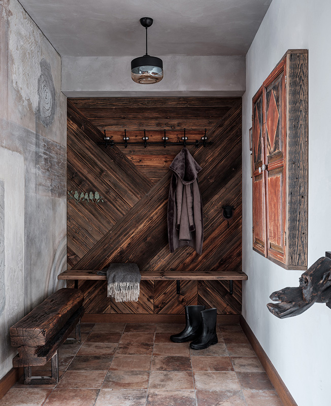 Екатерина Федорова оформила дом в подмосковном поселке для семейной пары с четырехлетним ребенком. В прихожей — винтажная скамья.