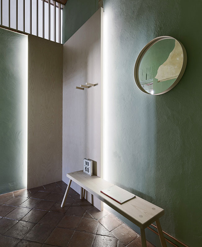 Архитекторы Альбина Шорина и Георгий Козлов (бюро Domestic Studio) спроектировали в центре Москвы лаконичный, но очень теплый интерьер. Скамья Studioilse.
