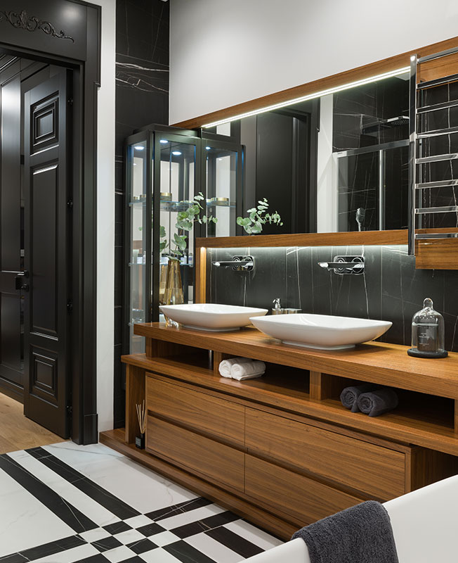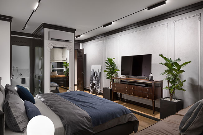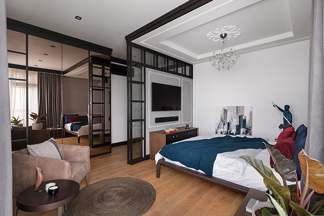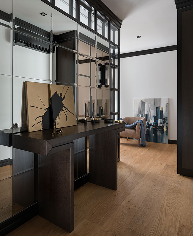 Мы решились на смешение разных стилистических элементов, что позволило максимально раскрыть характер заказчика и создать достойный «мужской» интерьер. К неоклассическому стилю добавили немного брутальности в духе лофта.